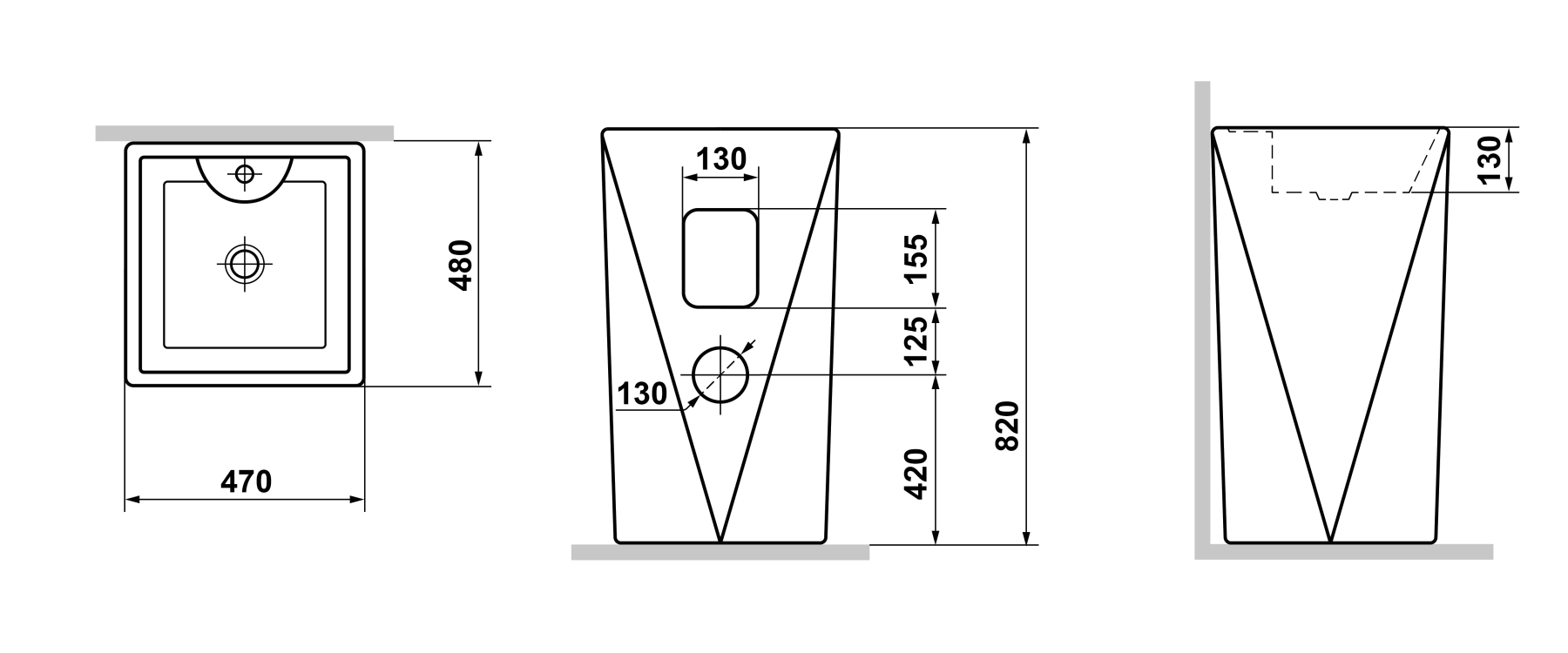 Высота раковины: 820 мм