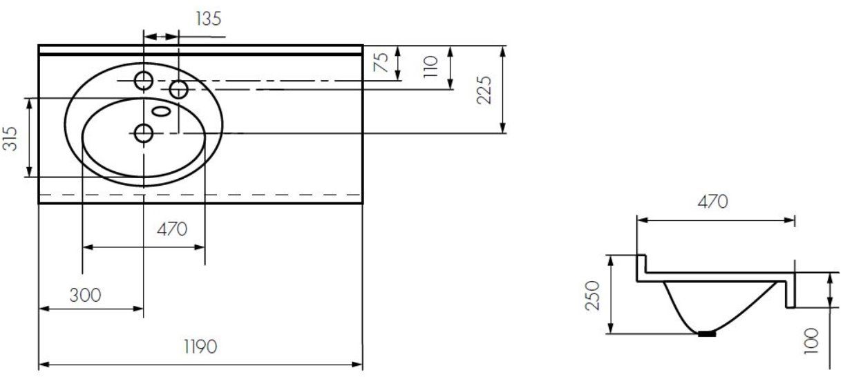 Раковина подвесная Акватон Отель левая 120см белый 1A70093NOT01L