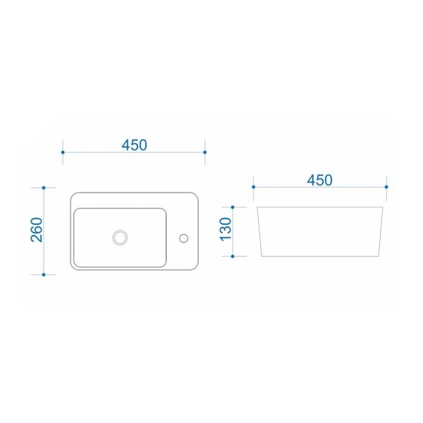 Раковина подвесная Maretti AR13PD30-844, белая. Материал: санфарфор. Размер: 45x26x13. Форма: прямоугольная.