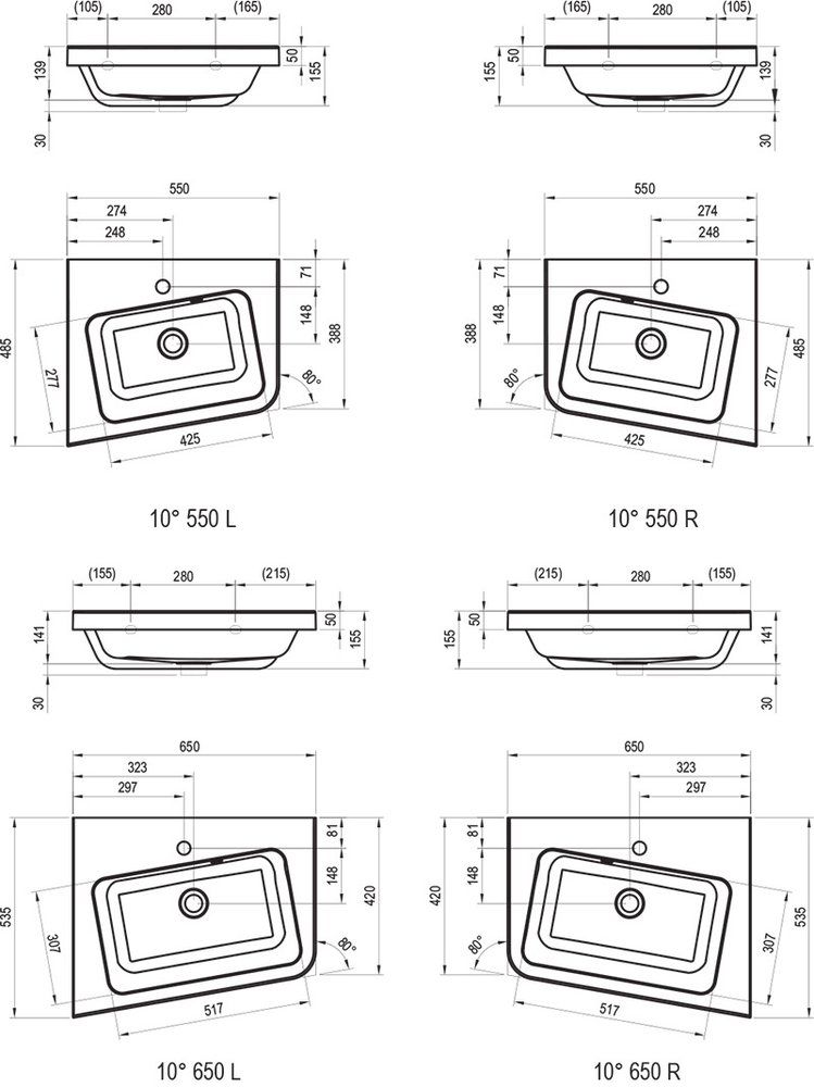 Раковина Ravak 10° 550 R XJIP1155000 правый купить