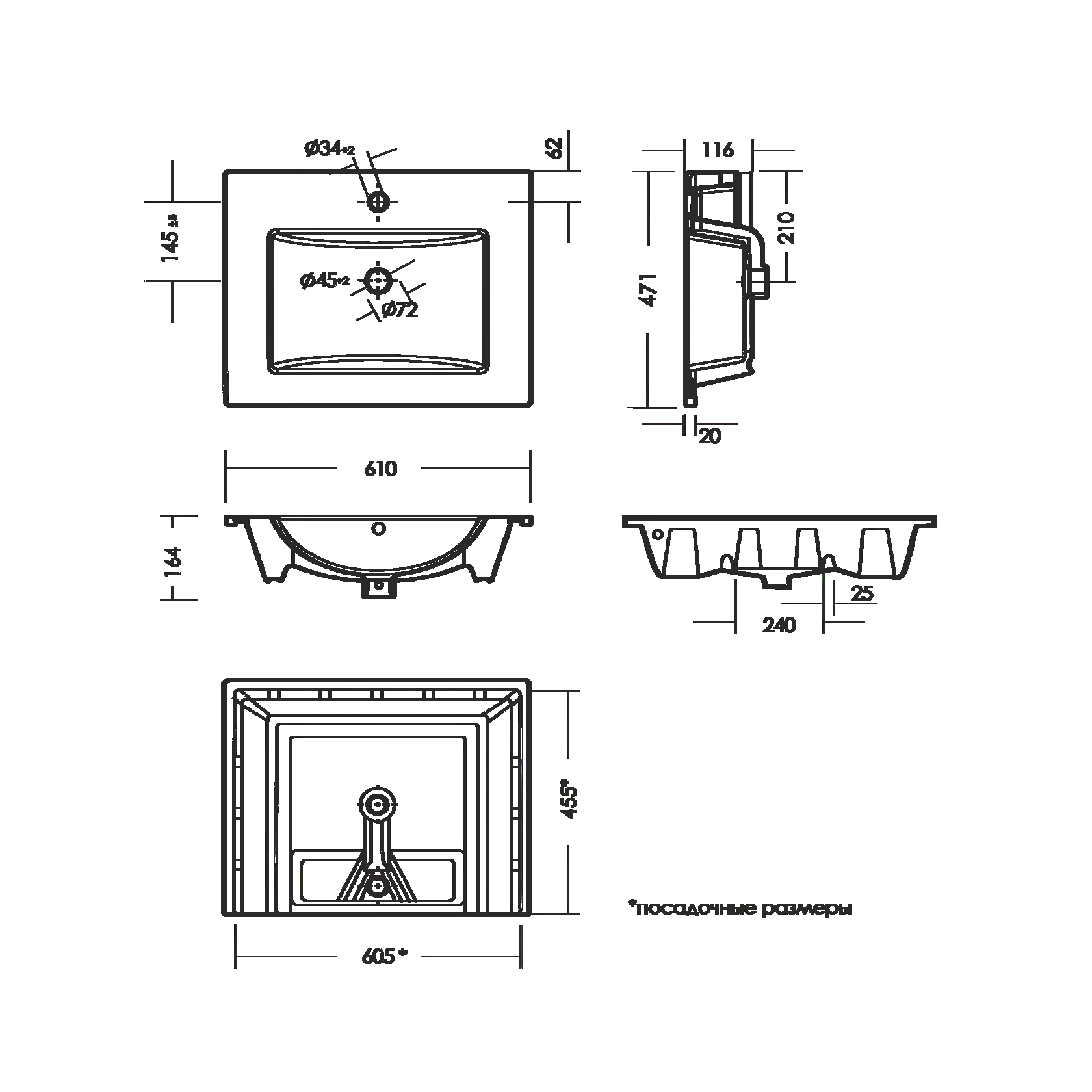Раковина Sanita Luxe Quadro WB.FN/Quadro/60-C/WHT.G/S1 61 см