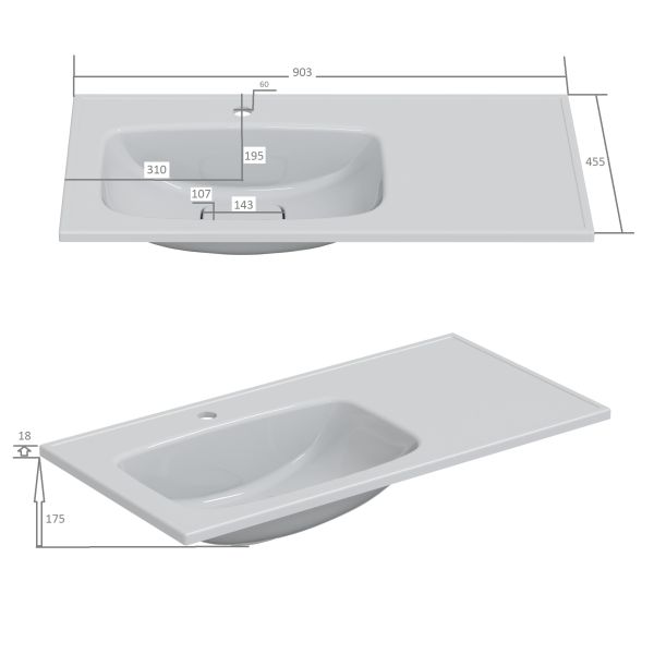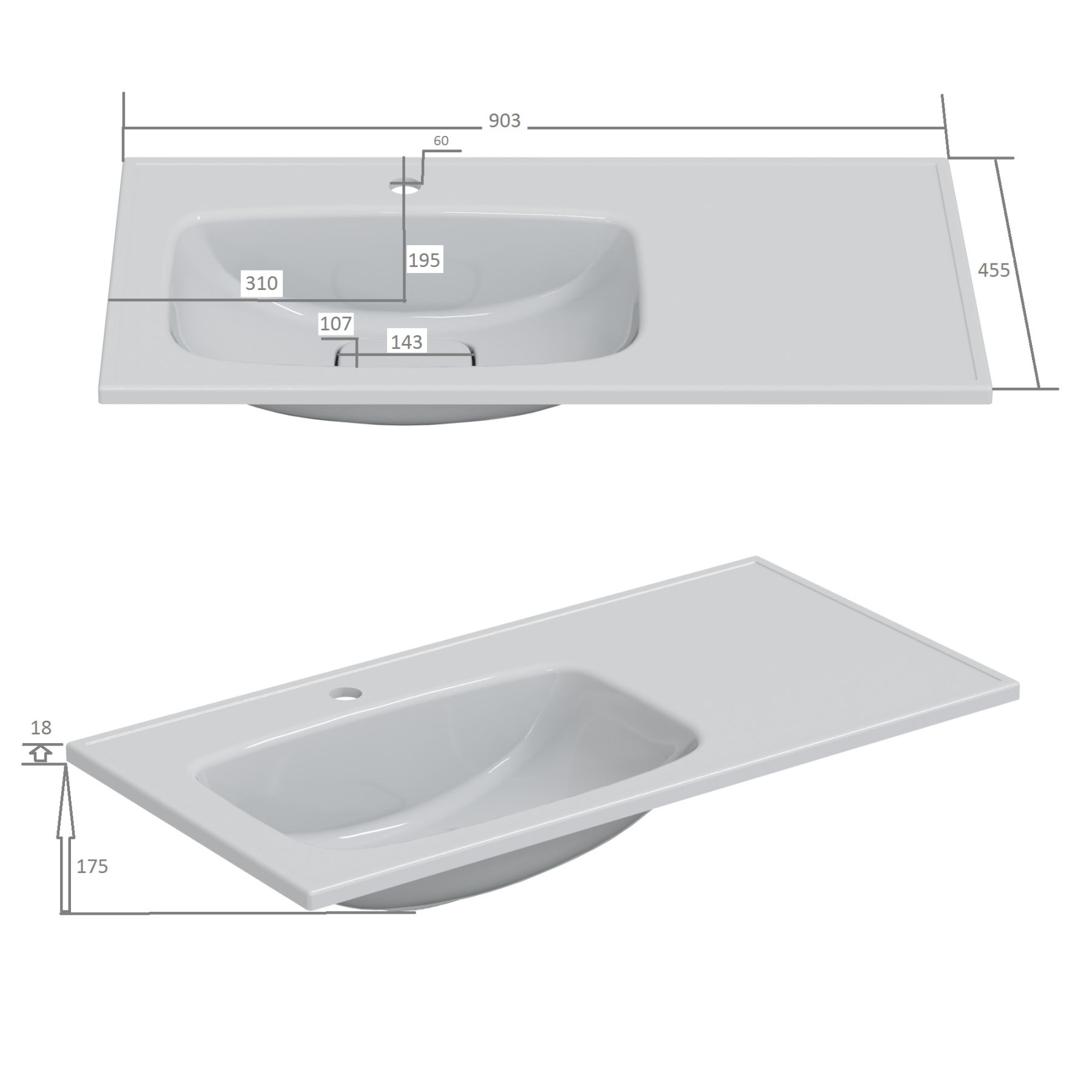 Мебельная раковина Венера 90 из литьевого мрамора, имеет удобную глубокую чашу и крыло с правой стороны