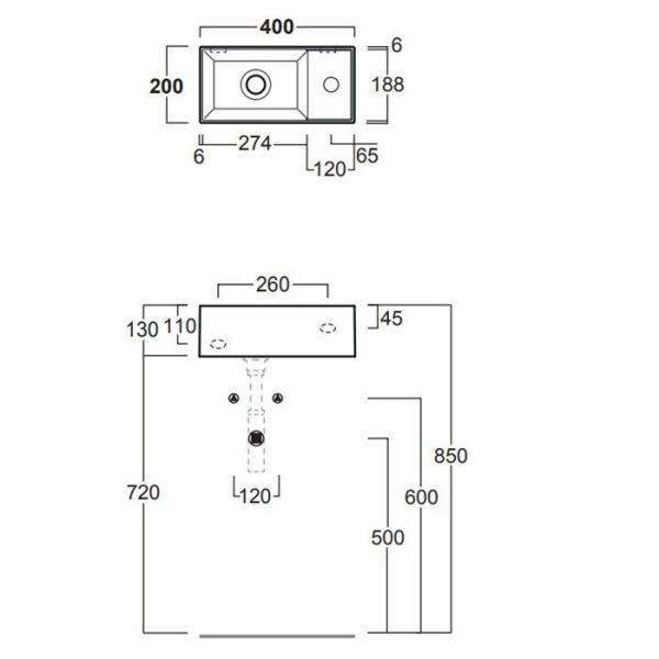 • Отверстия под смеситель: