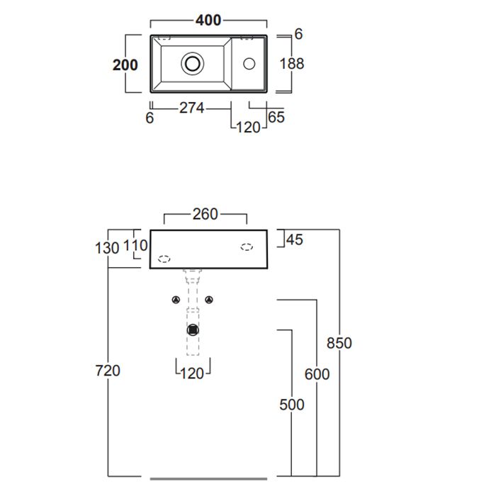 • Отверстия под смеситель: