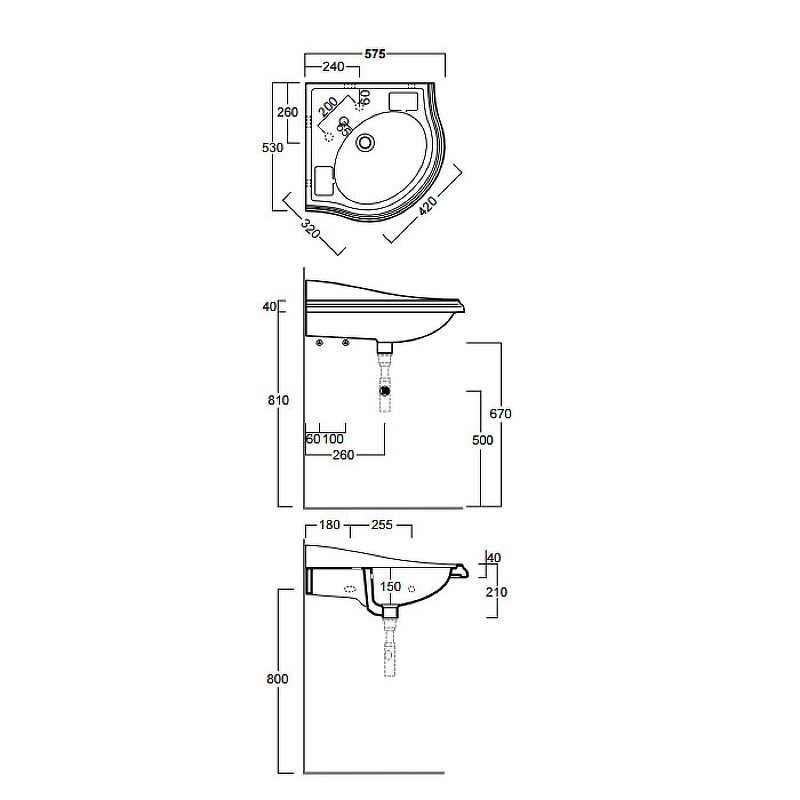 • Отверстия под смеситель: