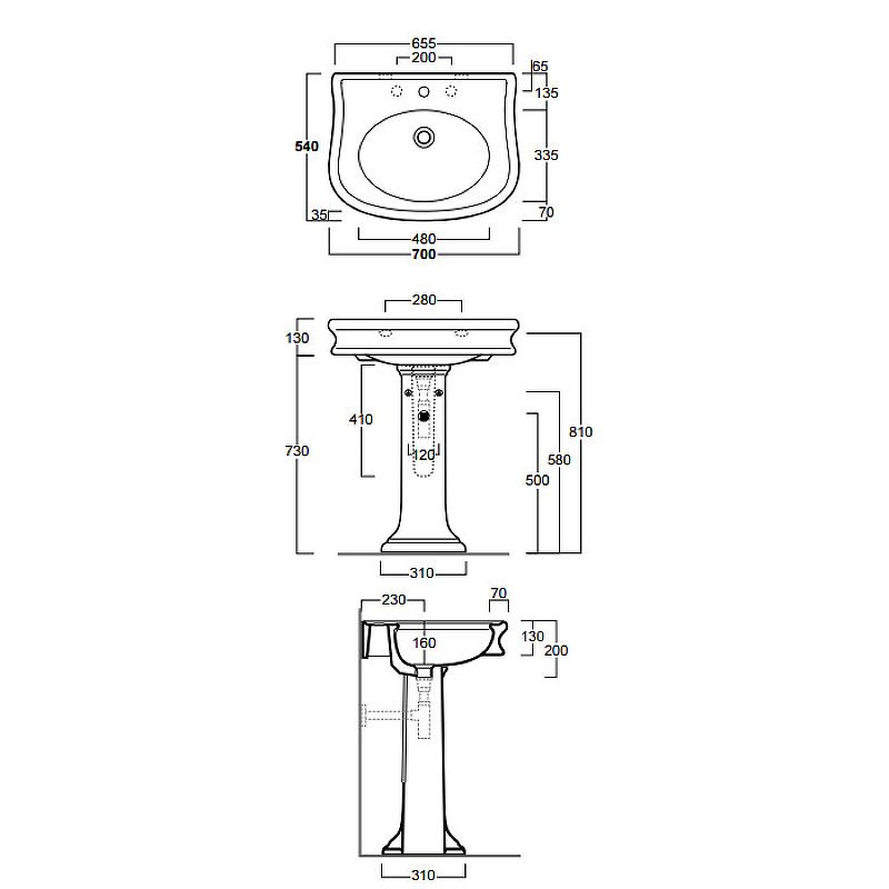 • Отверстия под смеситель: