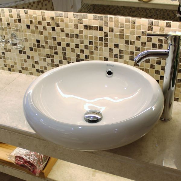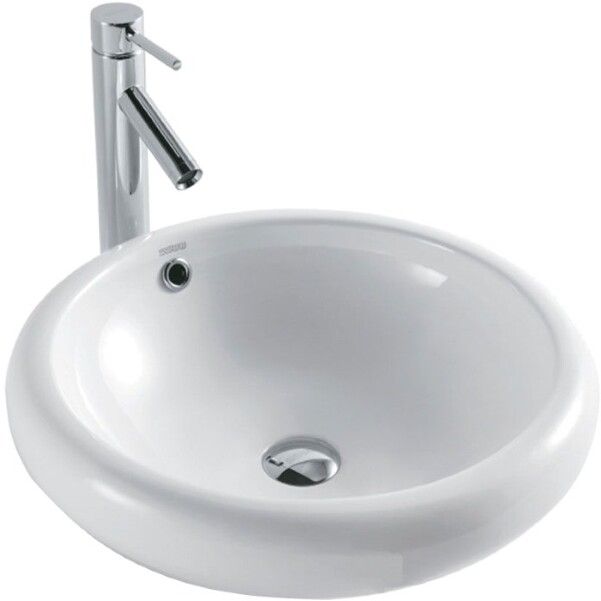 Накладная раковина круглая, цвет белый, без отверстия под смеситель, с приливным каналом
