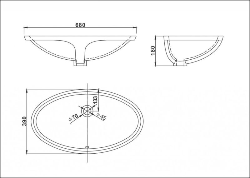 Габариты (шгв): 68x39x18 смВстраиваемая снизуФарфороваяУстанавливается на столешницуДиаметр слива: 4.5 смСлив-перелив в компл.Без антигрязевого покрытияБез антибактериального покрытия