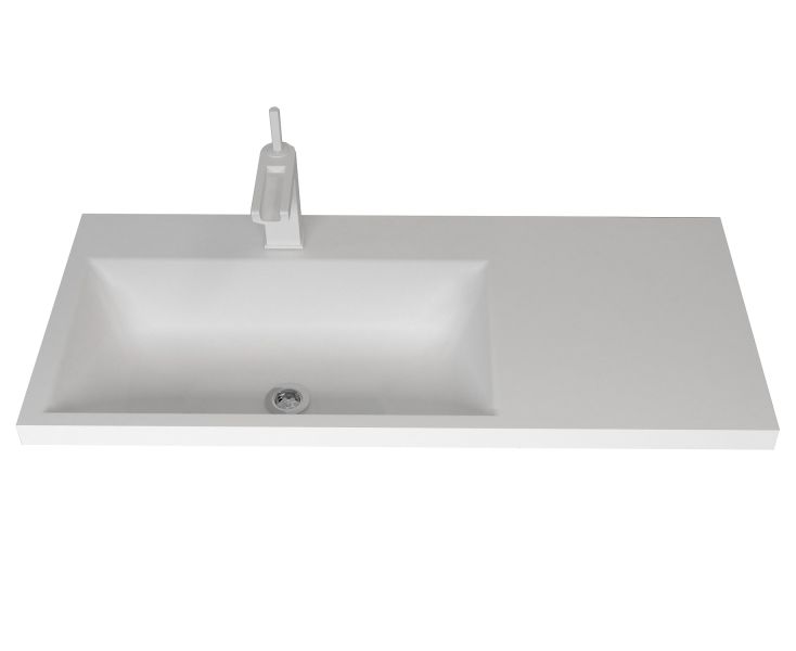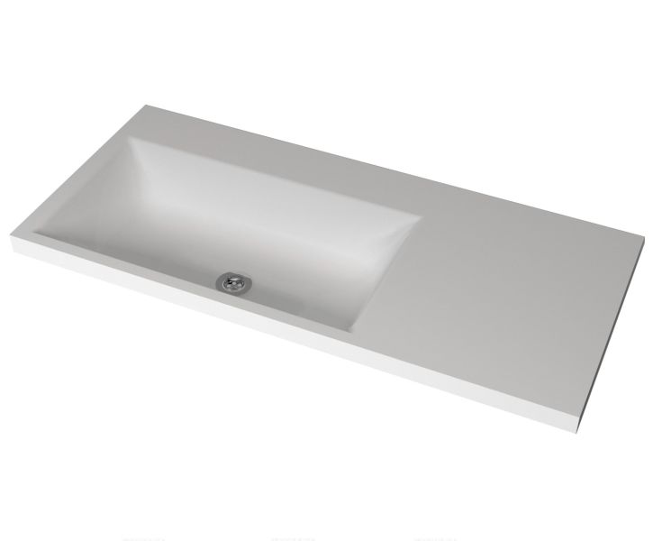 Раковина для ванной комнаты с увеличенным внутренним объемом чаши и дополнительным крылом. Верхний глянцевый слой гелькоута образует красивое декоративное и защитное покрытие.