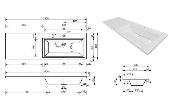 Раковина для мебели Style Line Estetus Даллас 150х48,2 СС-00002434 правая со столешницей, материал искусственный камень.Расположение столешницы - слева.Слив-перелив и донный клапан приобретаются отдельно