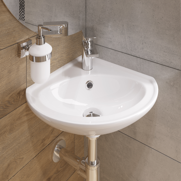 Мини-умывальник ВЕЕР продуман как угловая модель, которая сохраняет все возможное пространство в помещении без ущерба функциональности