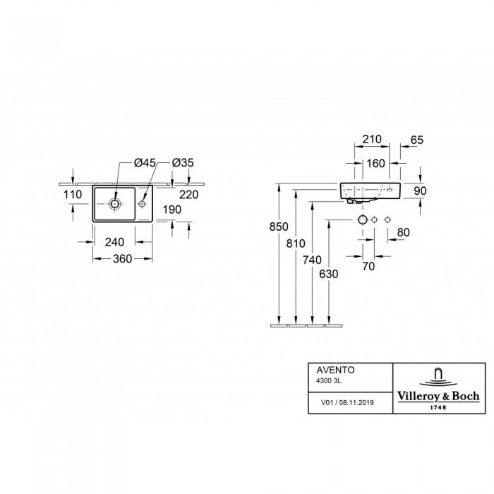 Раковина Villeroy Boch Avento 36 x 22 см 43003L01