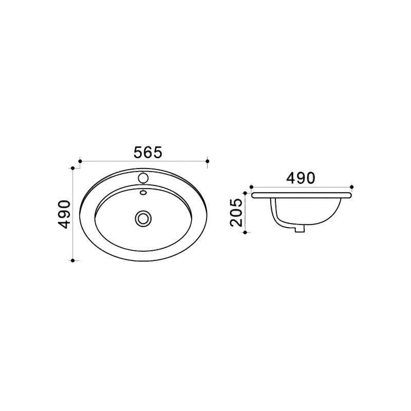 Раковина встраиваемая сверху Azario 56.5х47.5х18, фаянс (AZT808)