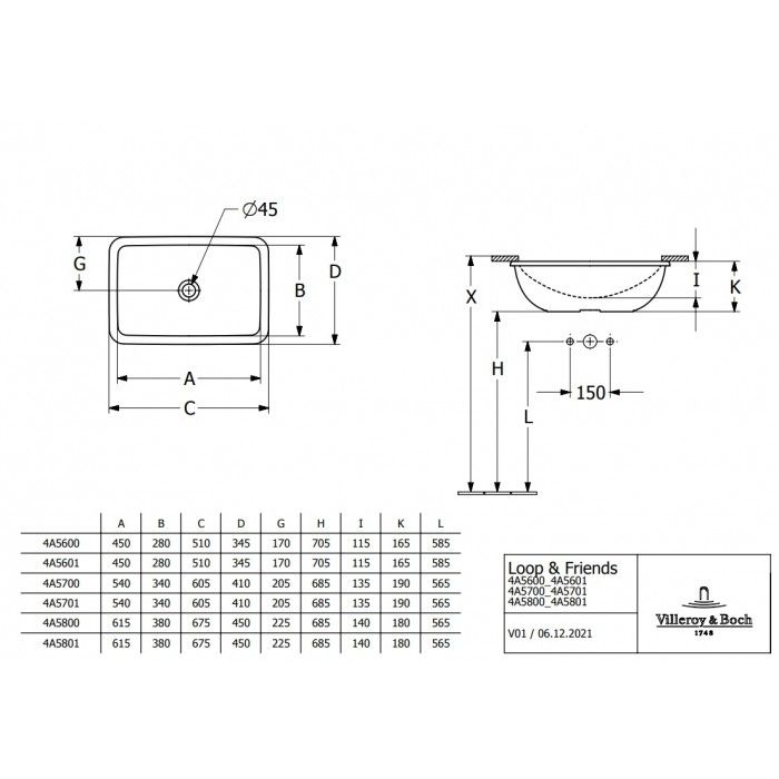 Раковина встраиваемая Villeroy Boch Loop & Friends 4A570101 белый купить