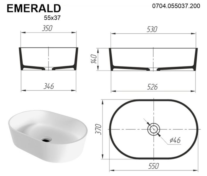 Раковина Whitecross Emerald 0704.055037.200 55см белый матовый купить