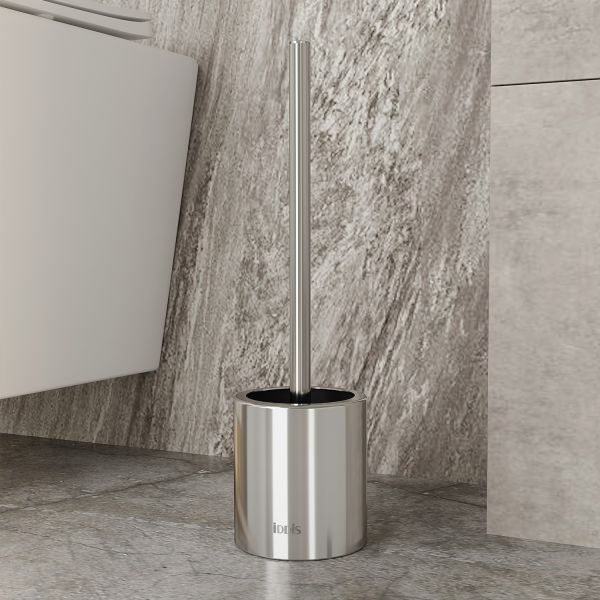 Напольный ерш с невысоким корпусом из полированной нержавеющей стали и черной щеткой. Благодаря универсальному стилю подойдет для любой туалетной комнаты.