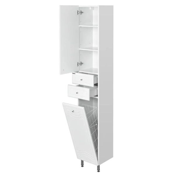 Шкаф-пенал Акватон Домус L роскошное решение для создания комфортной атмосферы в любой ванной комнате.В производстве используют только качественные влагостойкие материалы, в составе которых полностью отсутствуют опасные вещества. Коллекция Домус выполнена в эксклюзивном дизайнерском решении в лучших традициях современного стиля. Белый, основной цвет исполнения Акватон Домус, гармонирующий с большинством интерьерных решений. Шкаф-пенал предусматривает удобную и вместительную систему хранения, состоящую из дверей, ящиков. Важные габариты изделия: ширина 32.5 см, глубина 32.3 см, высота 202 см. Наличие бельевой корзины с вентилируемыми отверстиями позволит скрыть от посторонних глаз грязные вещи.Россия родина бренда Акватон, вся продукция производится со строгим соблюдением всех стандартов, благодаря чему можно быть абсолютно уверенным в надежности и высоком качестве. Шкаф-пенал Акватон Домус L создаст уют и комфорт в любом дизайнерском решении, и ванная комната обретет неповторимый элемент интерьера.