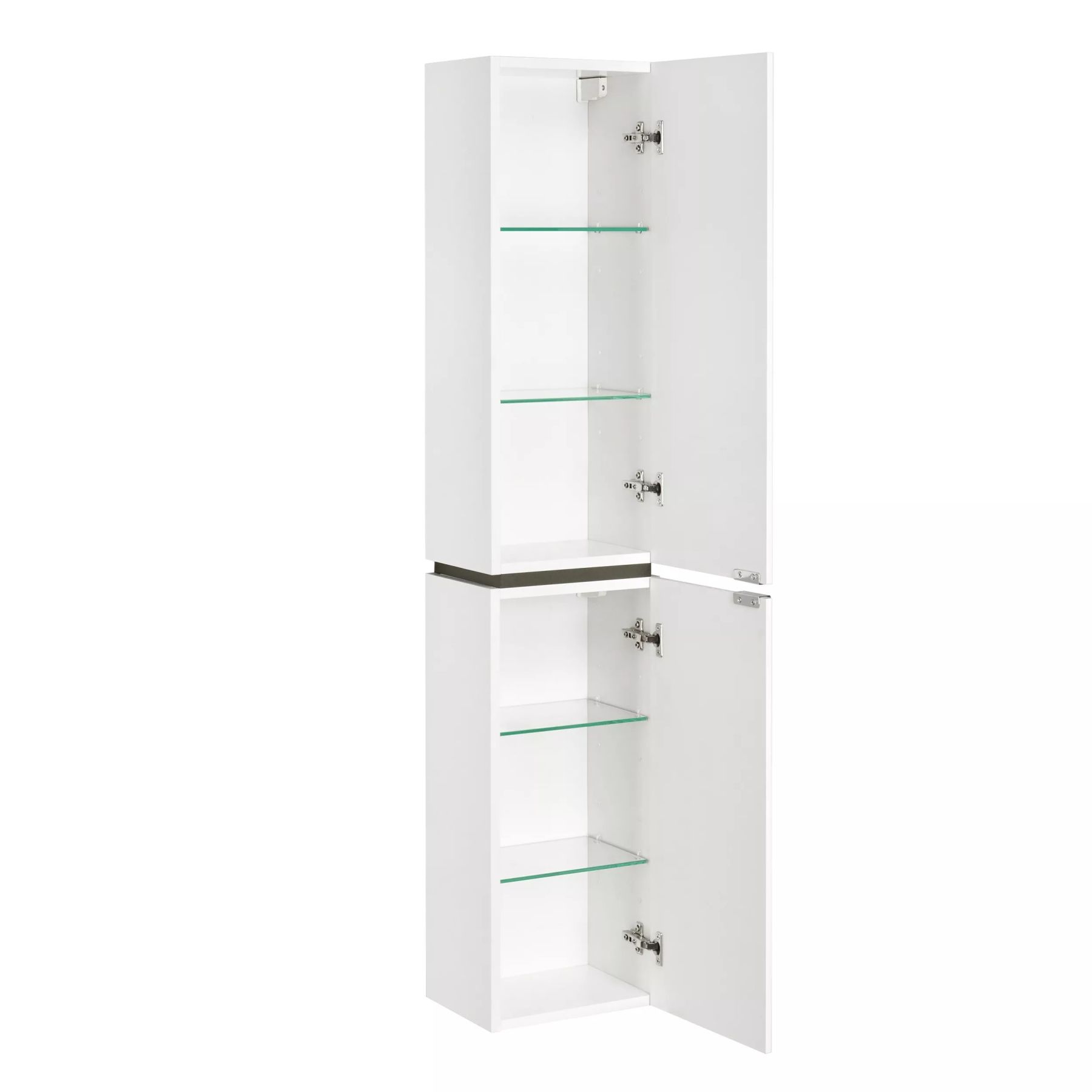 Подвесная шкаф-колонна Скай сочетает в себе ультра-белые глянцевые фасады с декоративной вставкой в цвете "серый кашемир". Чистоту линий фасадов подчеркивают эргономичные хромированные ручки. Корпус модели выполнен из высококачественной влагостойкой ЛДСП, фасады - из МДФ в пленке "белый глянец", что позволяет защитить поверхность от внешних воздействий. Петли данного шкафа расположены справа и оснащены интегрированным механизмом плавного довода, который обеспечивает мягкое и бесшумное закрывание дверок.