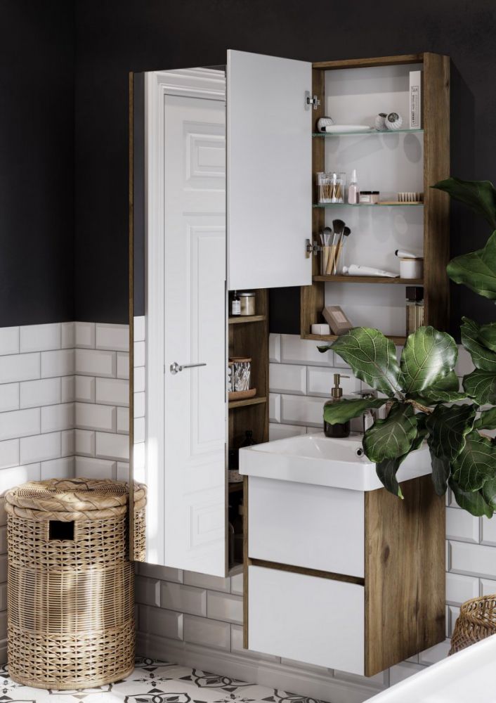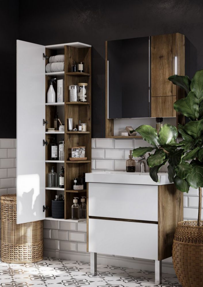Шкаф-колонна Акватон Сканди белый/дуб рустикальный 1A253403SDZ90 (дверь зеркальная)