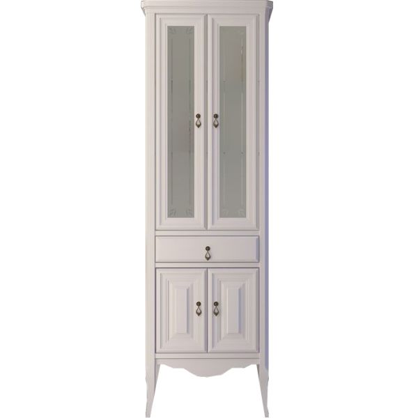 Шкаф-колонна Opadiris Лоренцо 55 00-00001799 БелыйВыполнен в классическом стиле с плавными изогнутыми формами и изящными слегка гнутыми ножками. Фасадные элементы украшены резными узорами, стекло матовое с узором.Ориентация: универсальная.