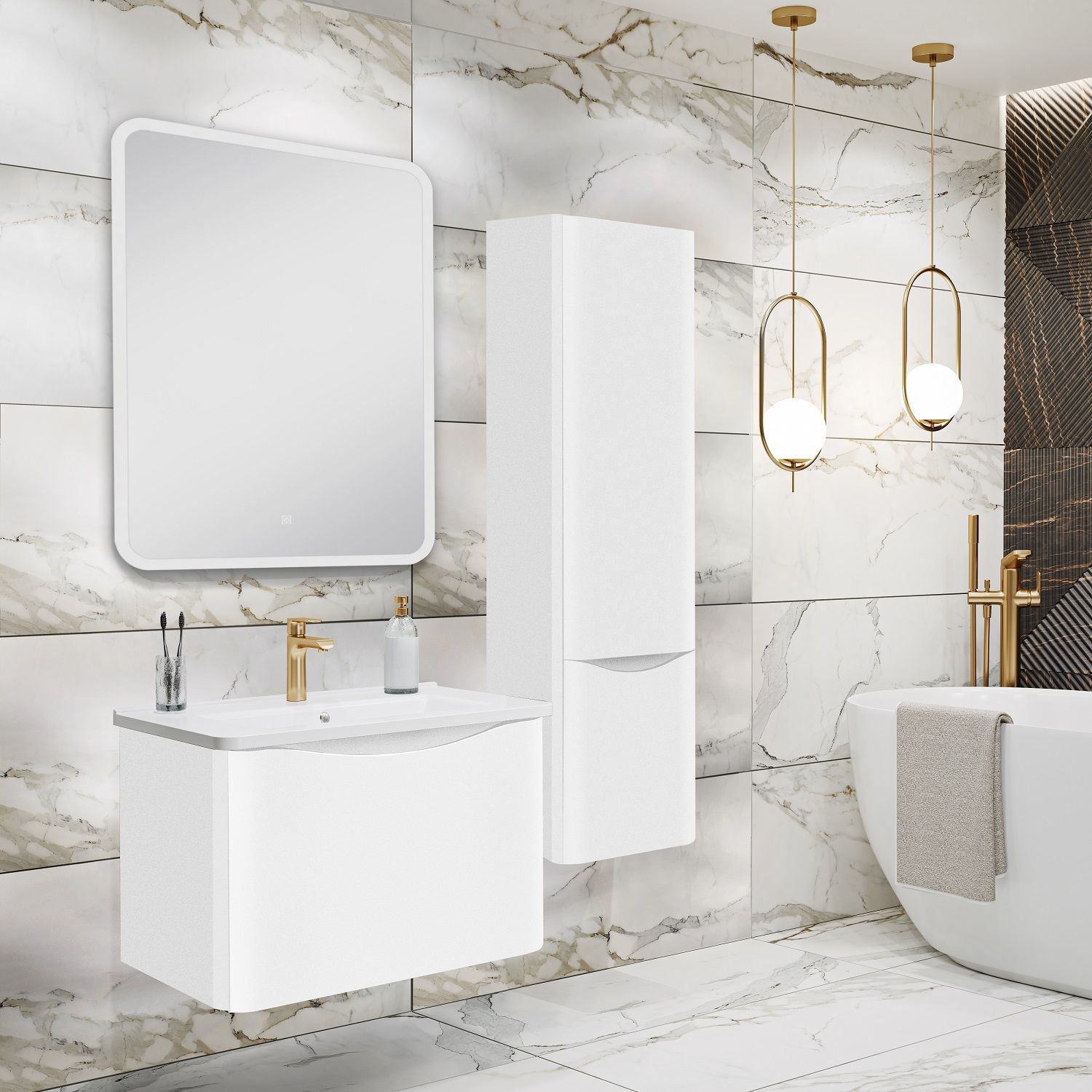 Шкаф пенал для ванной комнаты Runo Тоскана (подвесной) - выполнен в ультрасовременном дизайне в ... Подробнее