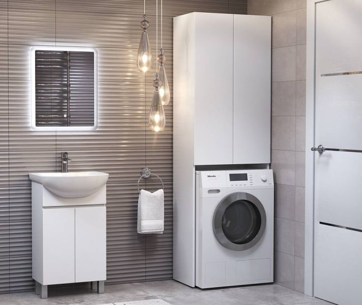 Шкафы Wing – идеальное решение, позволяющее сэкономить пространство ванной комнаты за счет размещения над стиральной машиной