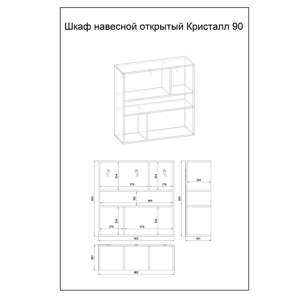 Шкаф навесной открытый Бриклаер Кристалл 4627125414756 90 см муссон