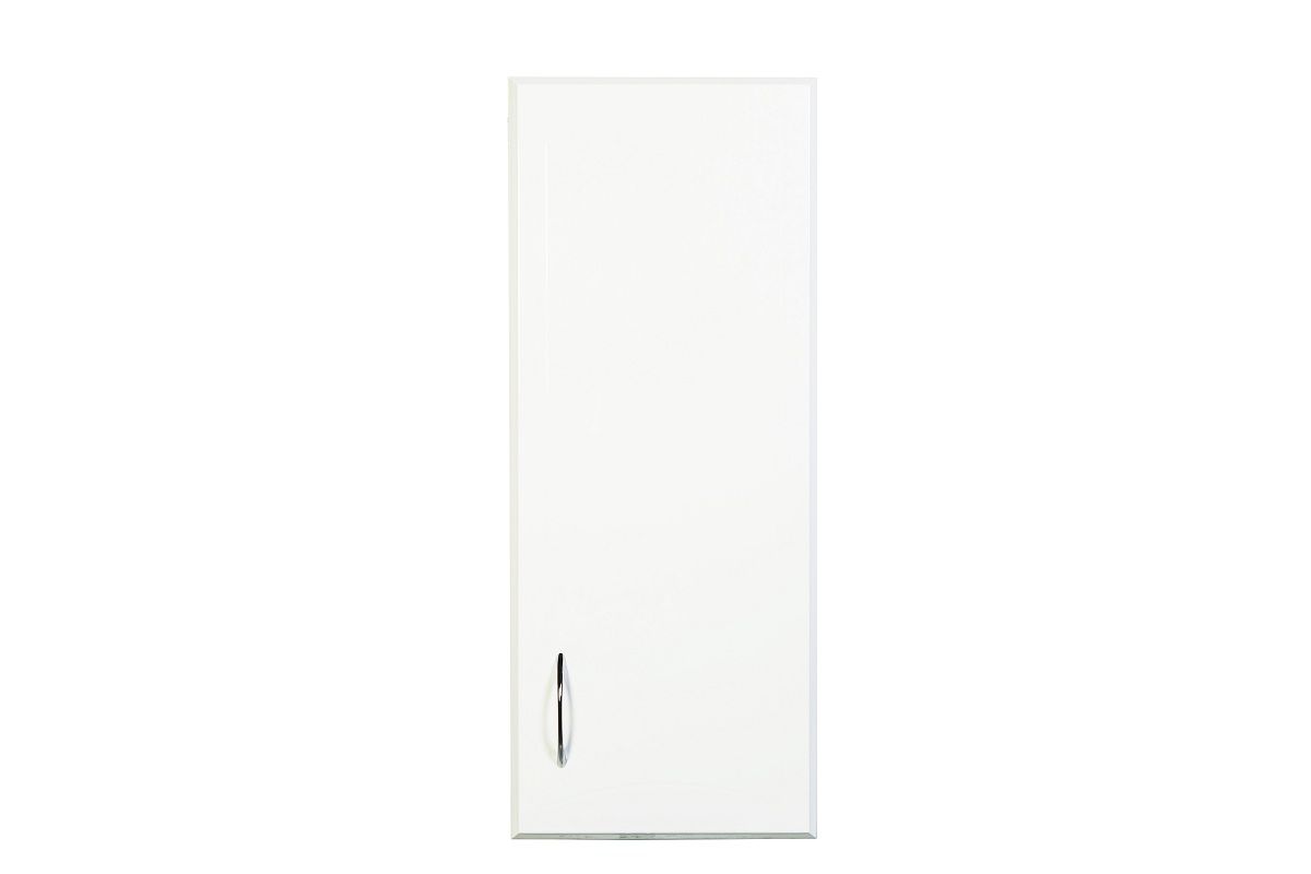 Шкаф навесной правый (петли справа). Фасад МДФ в пленке - белый глянец. Корпус ЛДСП - белый глянец. Дверца с механизмом плавного доведения. В комплекте две внутренние полки. Фурнитура в цвете хром.