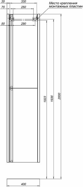 Габариты (ШхВхГ): 400х1800х322 мм.