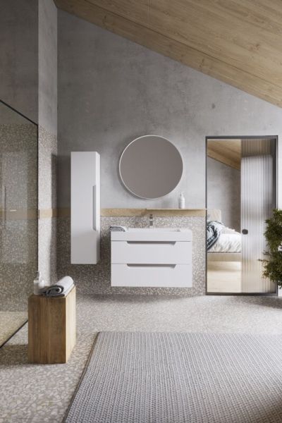 Коллекция мебели Cube – это строгие линии мебели для современных интерьеров, подчёркнутые искусным исполнением. Подвесные гарнитуры Cube поставляются в размерах 70 и 90 см. Доступные цвета мебели – белый и серый. Финальный слой лака – матовый.
