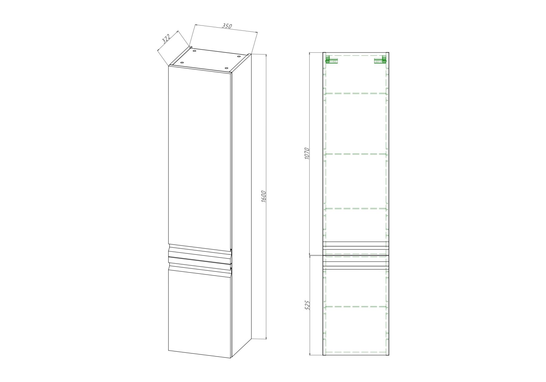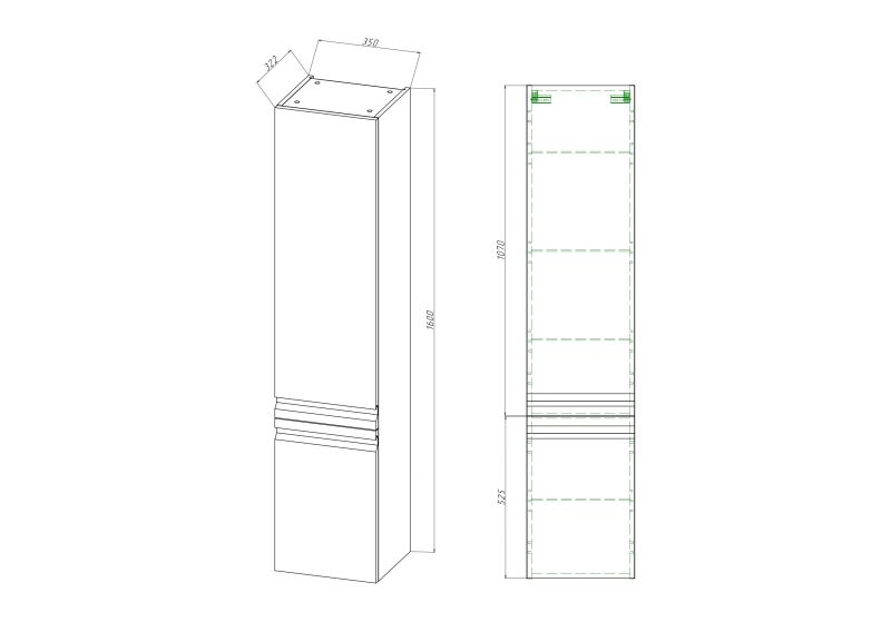 Габариты (Д В Ш), мм: 350*1600*322Материал корпуса: ЛДСП 16мм Эггер с последующей покраской в 5 слоевМатериал фасада: ЛМДФ 22мм Эггер с последующей покраской в 5 слоевМонтаж: подвеснойРасположение петель: справаЧетыре стеклянные полочки, одна полочка ЛДСП.Петли с мягким закрываниемНавесы усиленные (100кг/пара)Мебель поставляется в собранном видеГарантия: 2 года