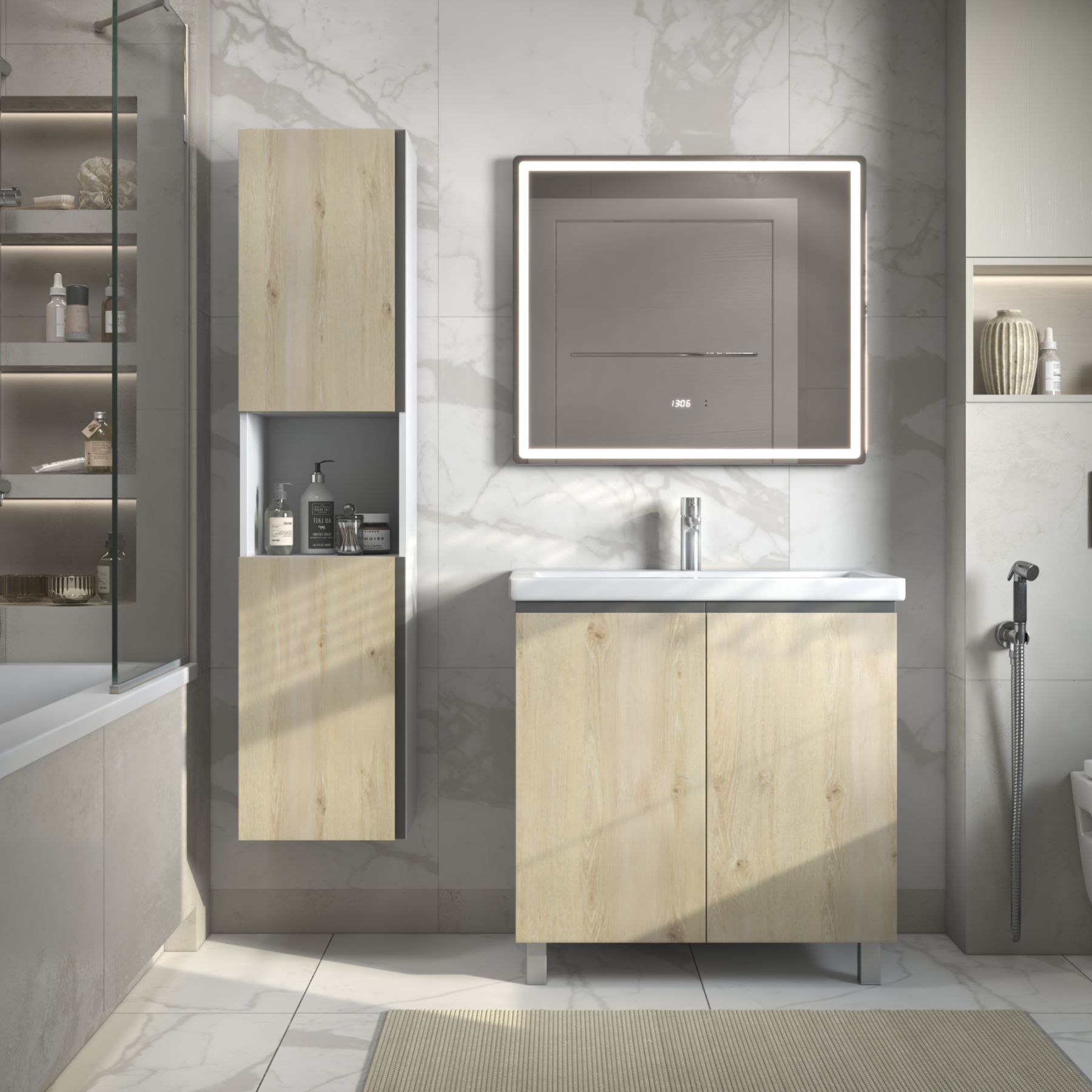 Шкаф-пенал подвесной Vigo Yuma 345 поставляется в разобранном виде дуб давос