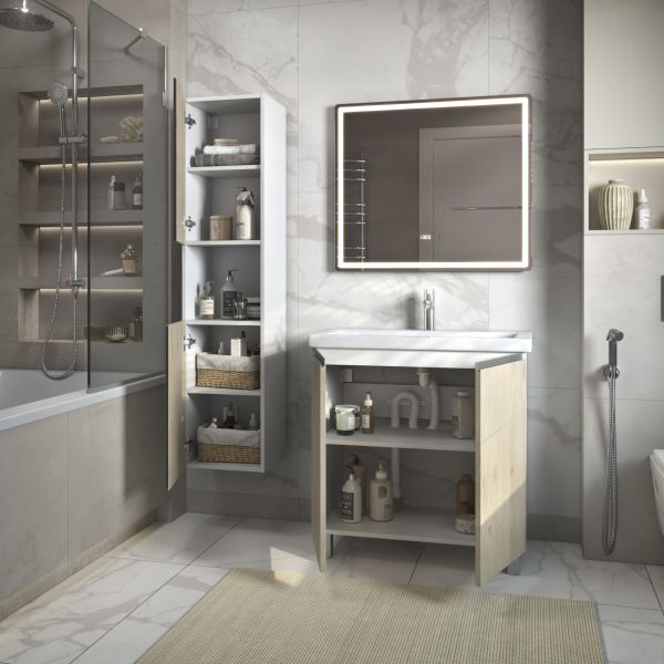 Шкаф-пенал VIGO Yuma 35 подвесной 345 дуб давос. Комплектация: корпус, 2 дверцы, петли с механизмом доводчика, 4 полки ЛДСП. Поставляется в разобранном виде.