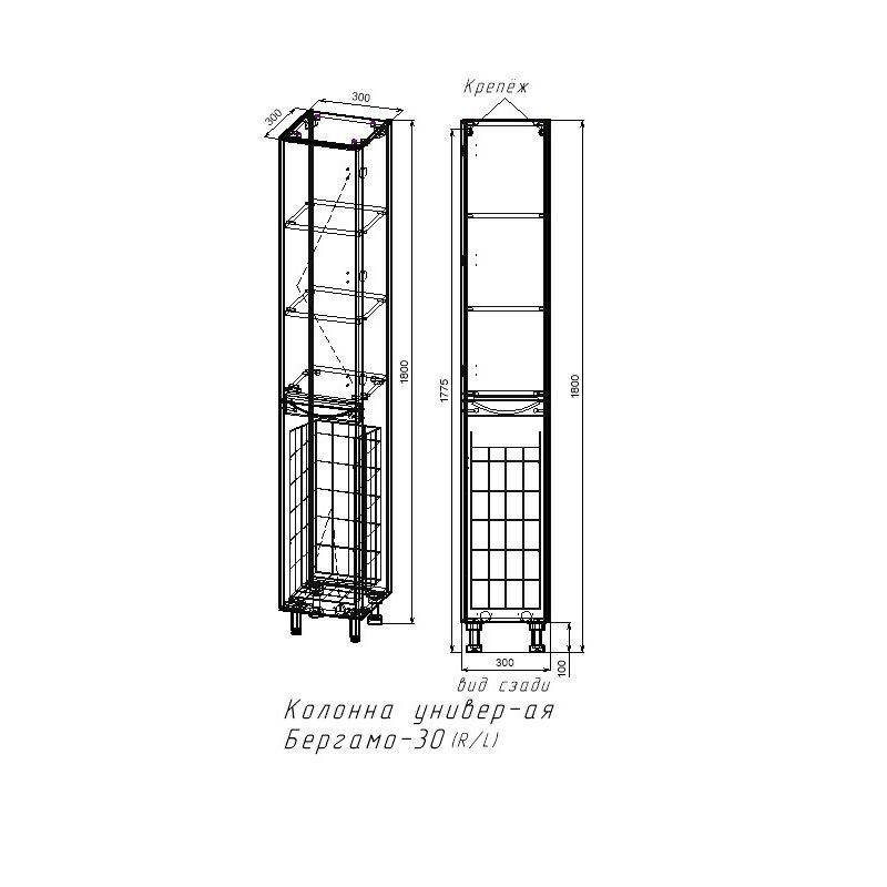 Шкаф-пенал Style Line Бергамо СС-00002326 Люкс антискрейтч Plus 30 см купить