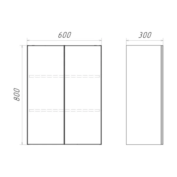 Габариты (ШхВхГ): 600*800*300 ммУниверсальный подвесной шкаф шириной 60 см может использоваться как в ванной комнате, так и в других помещениях. Это отличное решение для хранения разных предметов. За створками две горизонтальные полки. Петли с механизмами плавного закрывания.
