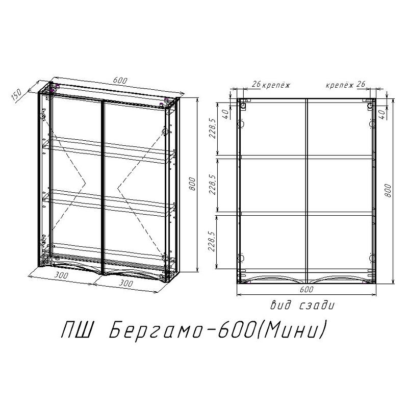 Размеры (ШхВхД): 600х800х150 мм.