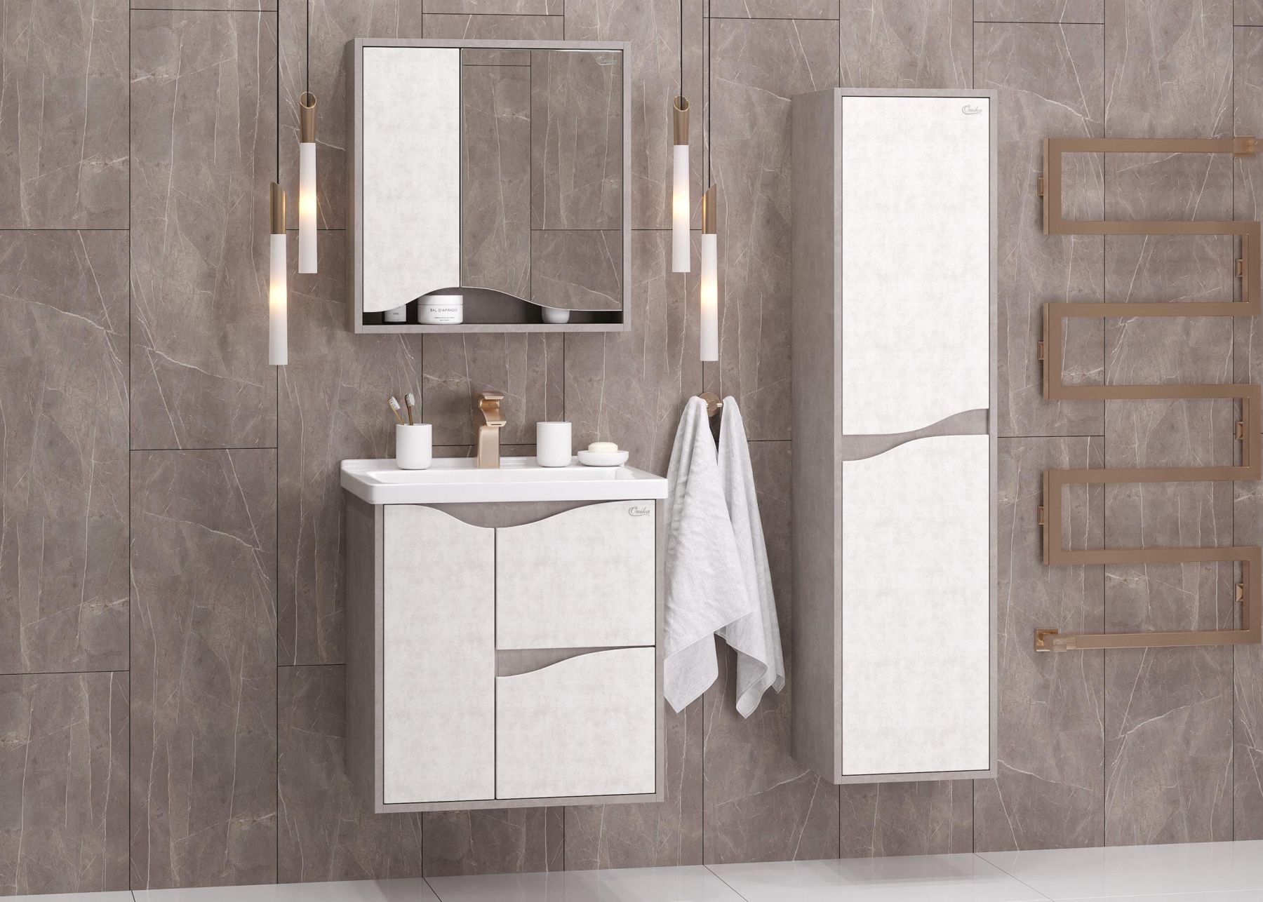 Зеркальный шкаф Onika БРЕНДОН 60 поможет создать особенную атмосферу ванной комнаты: текстуры камня и бетона гармонично дополняют друг-друга, создавая сдержанный выразительный акцент в интерьере.