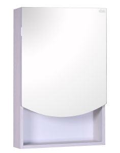 Открытая полка обеспечит быстрый доступ к часто используемым аксессуарам, а пространство за распашной зеркальной дверцей, оснащенной механизмом плавного закрывания, станет удобным местом для хранения различных бытовых принадлежностей.