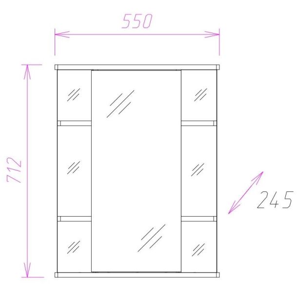 Корпус шкафа-зеркала выполнен из ЛДСП, фасад - из ЛДСП и ЛМДФ в пленке, устойчивых к механическим воздействиям, перепадам температур и высокой влажности.