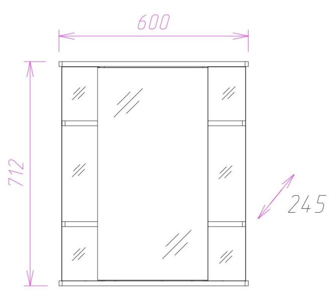 Корпус шкафа-зеркала выполнен из ЛДСП, фасад - из ЛДСП и ЛМДФ в пленке, устойчивых к механическим воздействиям, перепадам температур и высокой влажности.