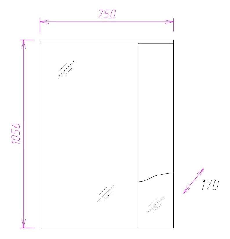 Зеркальный шкаф Onika МОНИКА 75 отличается нестандартно высоким зеркалом, которое закрывает стену до раковины и зрительно увеличивает пространство.