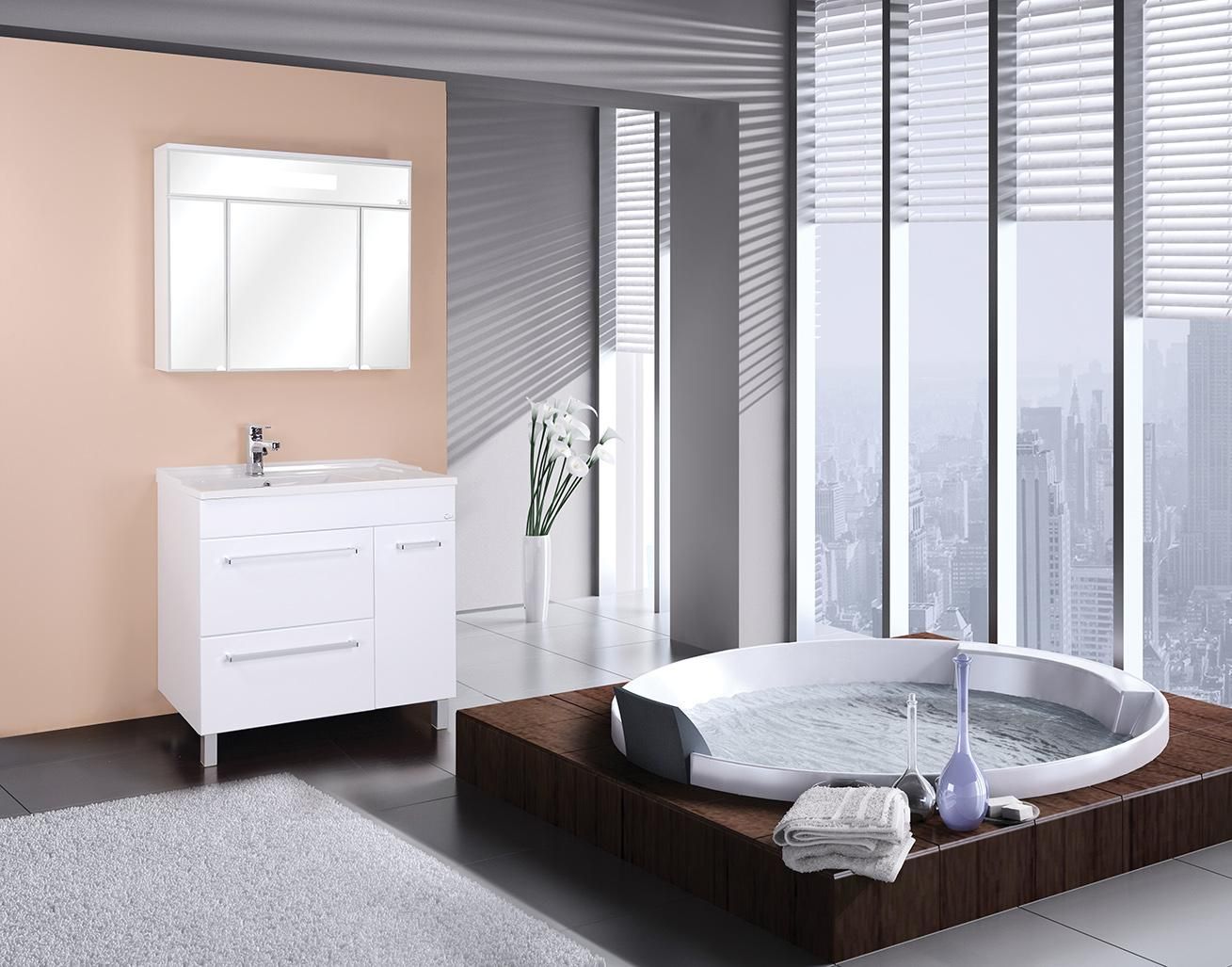 Внешне это отражается в лаконичной прямоугольной форме без ручек и лишнего декора и стильной подсветке, а функционально - в трех дверцах с механизмом плавного закрывания, скрывающих просторное пространство для хранения необходимых вещей.