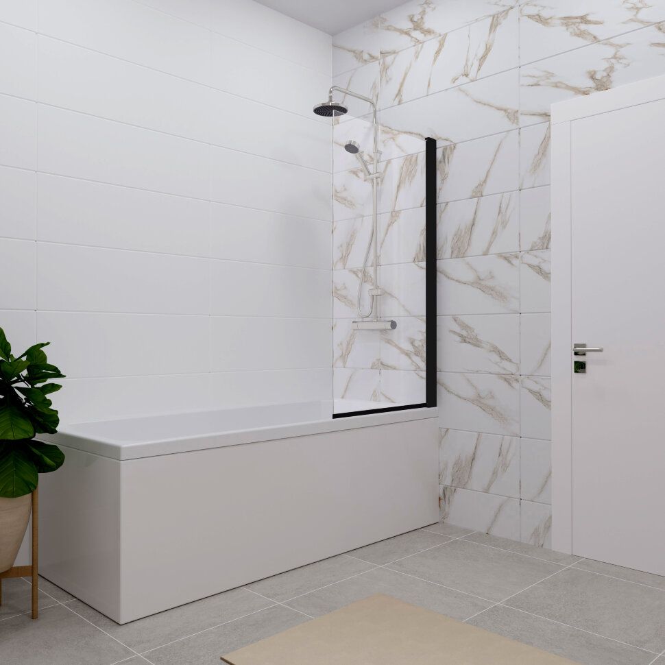 Штора на ванну Triton Соло Щ0000051154 75 см профиль черный стекло прозрачное