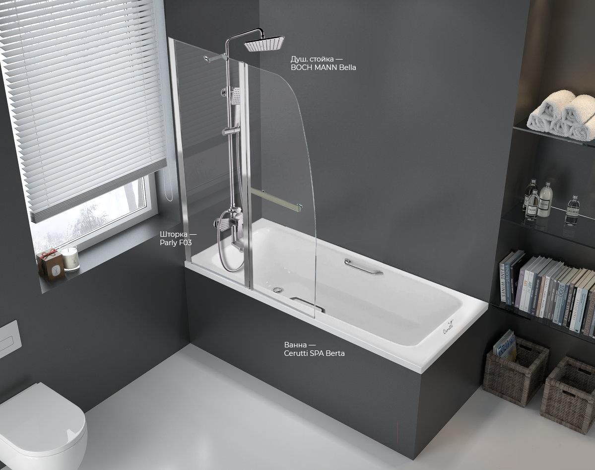 Шторка для ванной Parly F03Размер: 120х130 смМодель из прозрачного закаленного стекла (5 мм) устойчива к случайным ударам. В случае битья, полотно рассыпается на множество граней с тупыми концами, о которые невозможно пораниться.Алюминиевый полированный профиль в цвете хром устойчив к образованию коррозии, не деформируется при перепадах температуры и высокой влажности.Шторка – универсальная, подходит для установки на правую и левую сторону.Модель состоит из двух створок – распашной и неподвижной. Размер стационарной части до распашной дверцы — 60 см.Достоинства стеклянной шторки для ванны:Защищает ванную комнату от брызг воды. Пол возле ванны остается сухим, что снижает шансы поскользнуться после водных процедур.Стильный дизайн дополнит оформление ванной комнаты.Шторки из стекла практичны, долговечны и гигиеничны. По сравнению с тканными аналогами, на стеклянных моделях не скапливаются бактерии и грязь, полотно легче чистить.