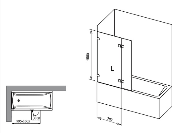 Шторка на ванну Ravak Briliant BVS2-100 L 7ULA0A00Z1 Transparent профиль хром левый