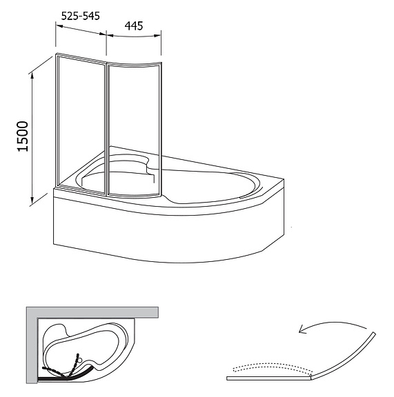 Для установки шторки понадобится лишь нескольких шурупов. Ее можно монтировать в готовую ванную комнату. Материал полотна двери:полистирол