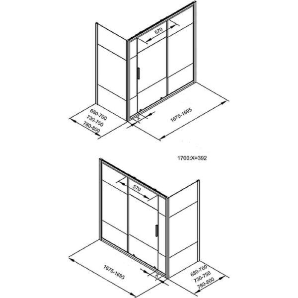 Шторка на ванну с боковым стеклом Aquanet Practic 292128 170x80 см прозрачное стекло/шелкография профиль хром