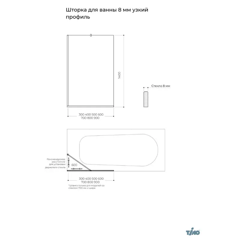 Шторка на ванну Timo T21, 90 см, стекло матовое, профиль черныйСтеклянные шторки на ванну Timo - идеальное сочетание стиля и функциональности. Современные стеклянные шторки изготавливаются из закаленного стекла. Это стекло не только прочное и устойчивое к механическим повреждениям, но и обладает высокой термостойкостью. Монтаж стеклянной шторки осуществляется с помощью алюминиевого профиля, что обеспечивает надежное крепление и простоту установки. Стеклянные шторки для ванны обладают привлекательным внешним видом и могут стать ярким акцентом в интерьере. Их прозрачность создает эффект легкости и позволяет визуально увеличить пространство ванной комнаты. Существует множество вариантов оформления и отделки алюминиевого профиля, что позволяет подобрать идеальное сочетание под любой стиль. Еще одним важным аспектом, который стоит отметить, является наличие специального уплотнителя, который предотвращает попадание воды на пол ванной комнаты. Уплотнитель обеспечивает надежную защиту от брызг, сохраняя при этом эстетичный вид шторки.