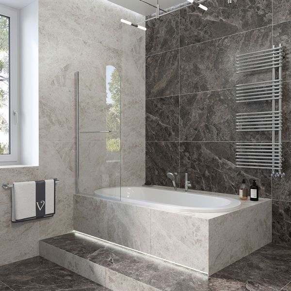 Шторка на ванну Veconi Palau PL-79, 900x1500, хром, стекло прозрачное купить