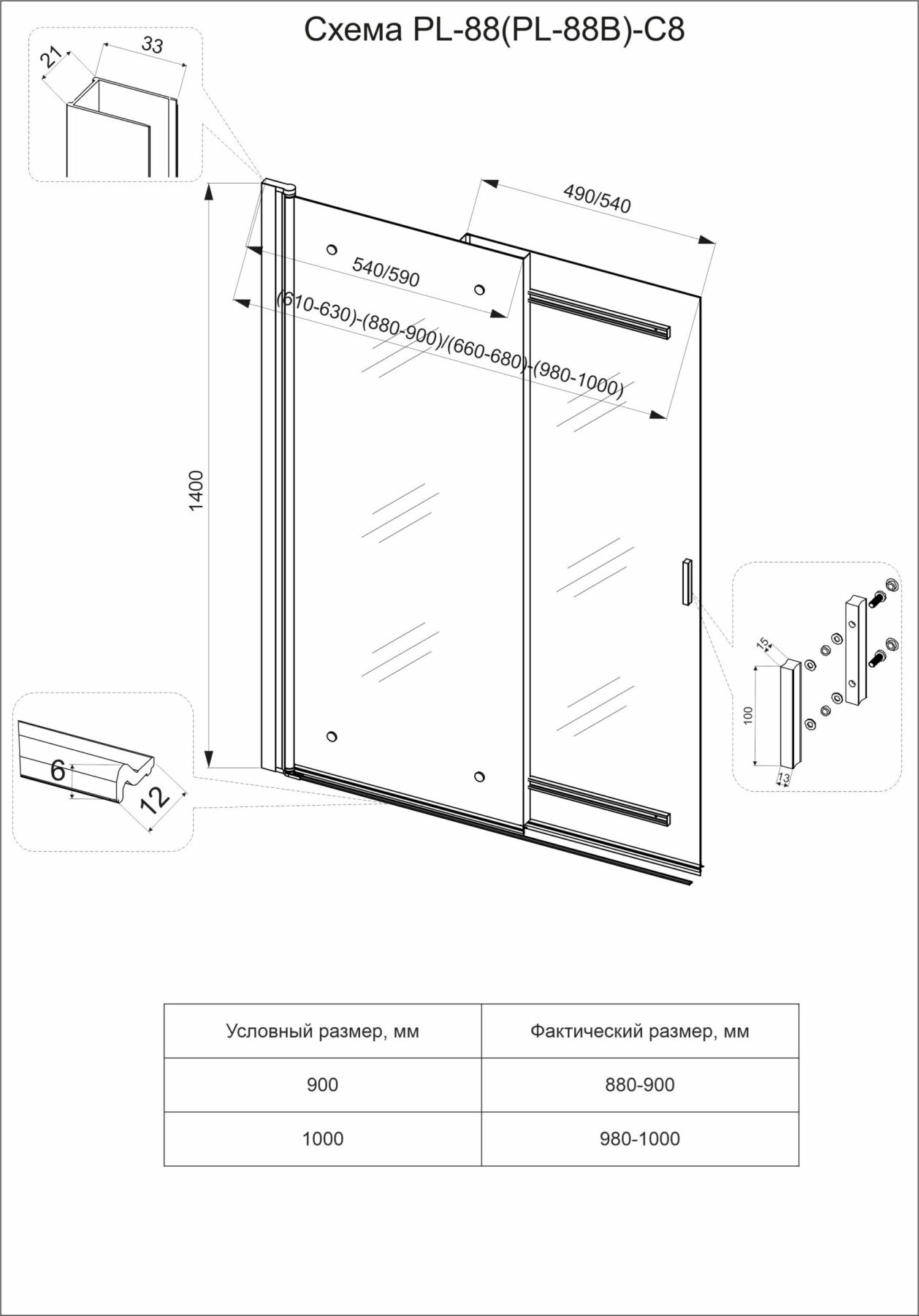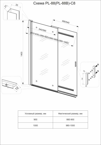 Шторка на ванну Veconi Palau PL-88CH, 900x1400, хром, стекло прозрачное